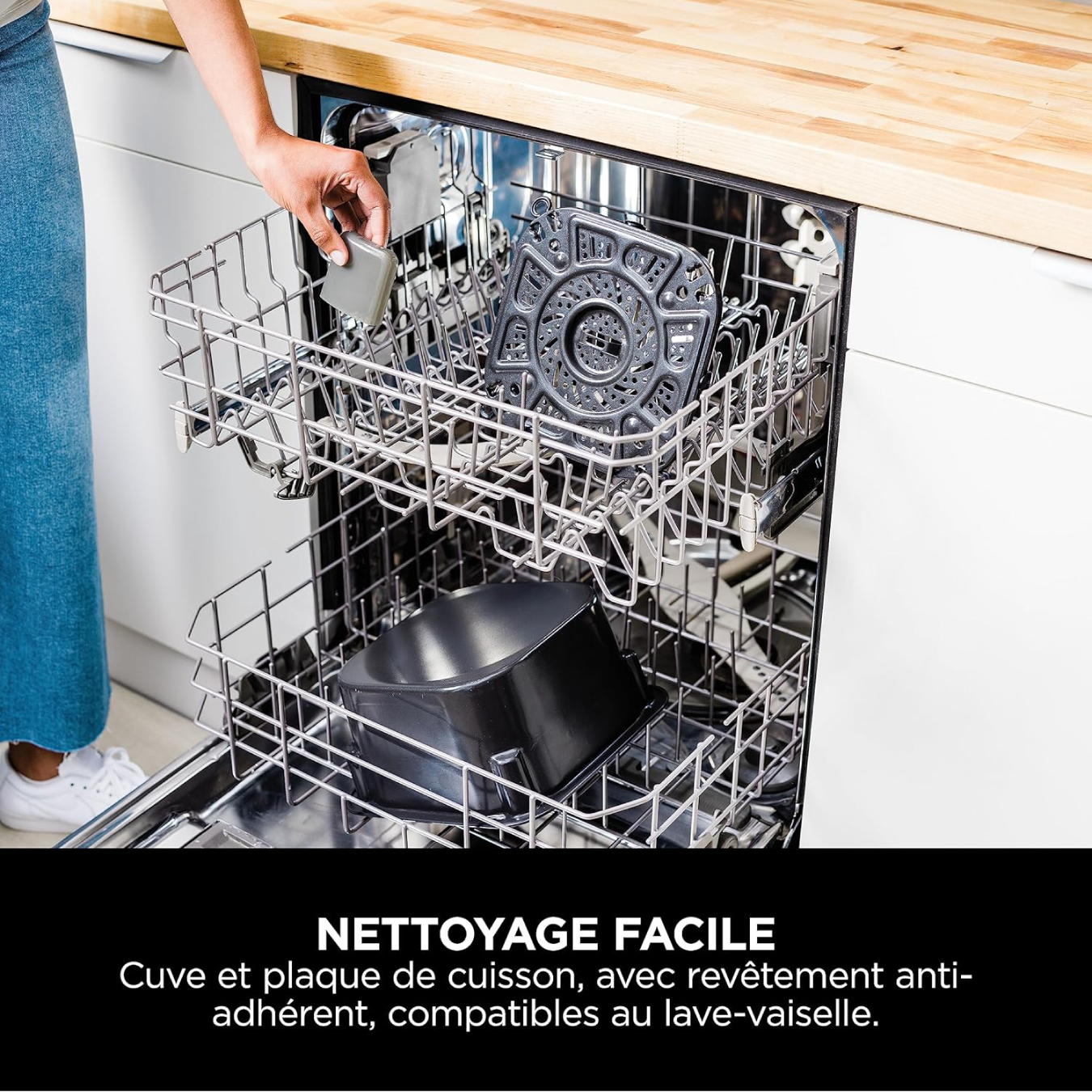 10 FONCTIONS : Repas Rapides, Cuisson Vapeur à l'Air, Cuisson Vapeur, Grillade, Friture à l'Air, Cuisson/Rôtissage, Déshydratation, Saisir/Sauter, Cuisson Lente. Passez facilement entre les modes Cuisson Rapide et Friture à l'Air/Plaque de Cuisson.
